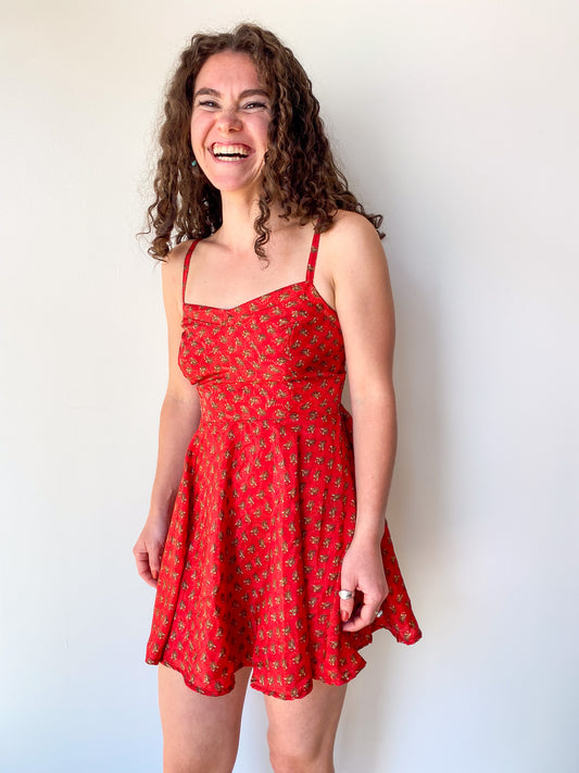 Red Paisley Slip Dress—[S]