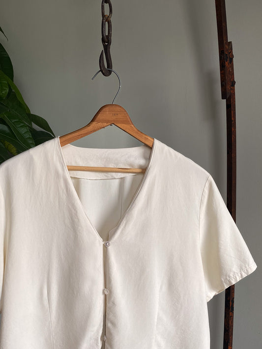 Vintage Buttoned Silky Blouse—[L]