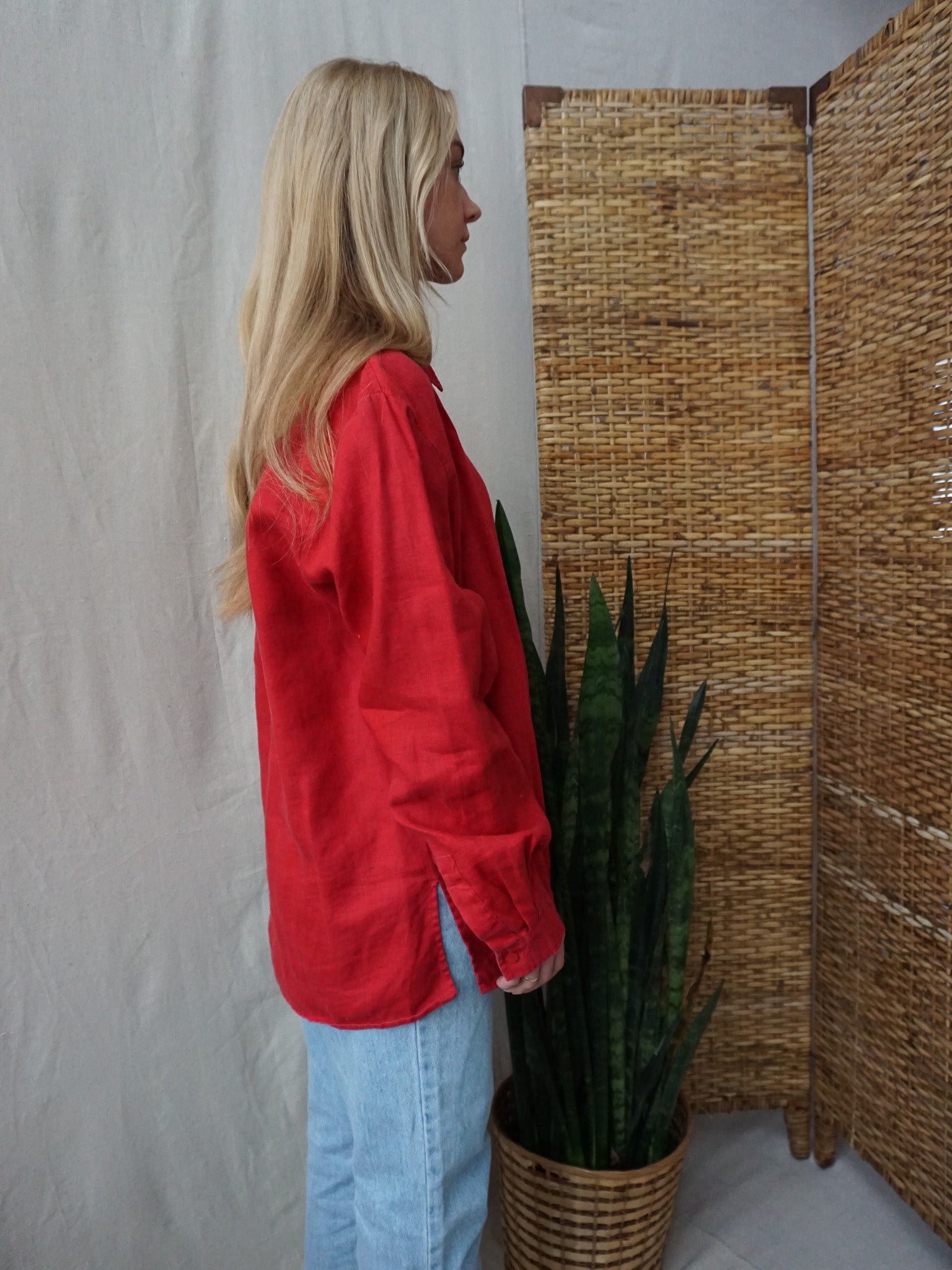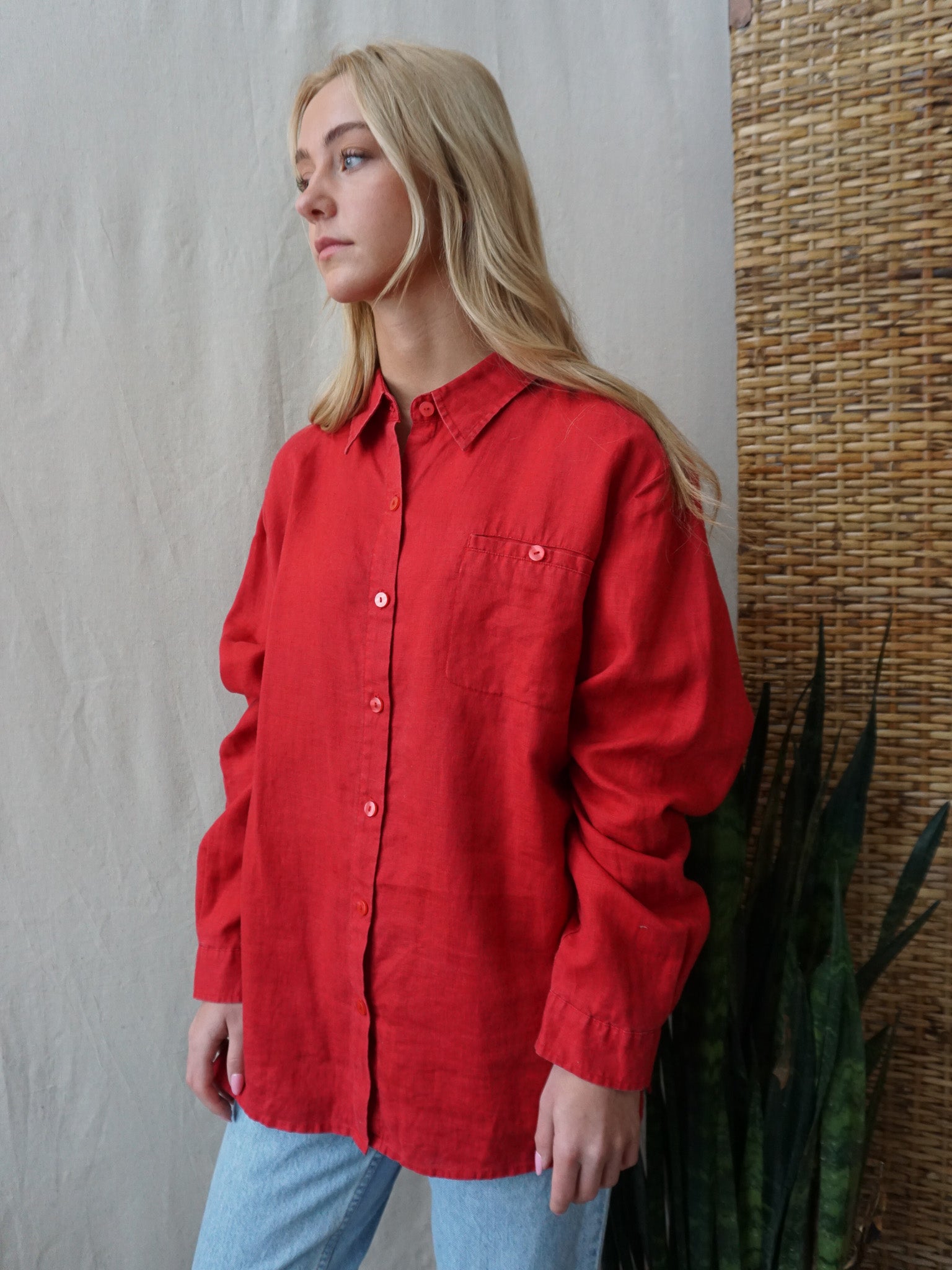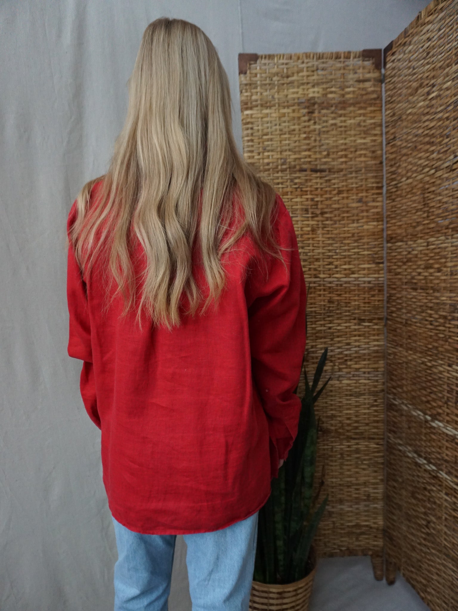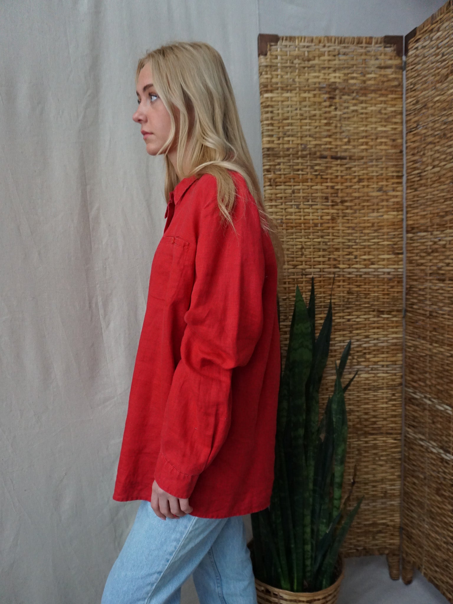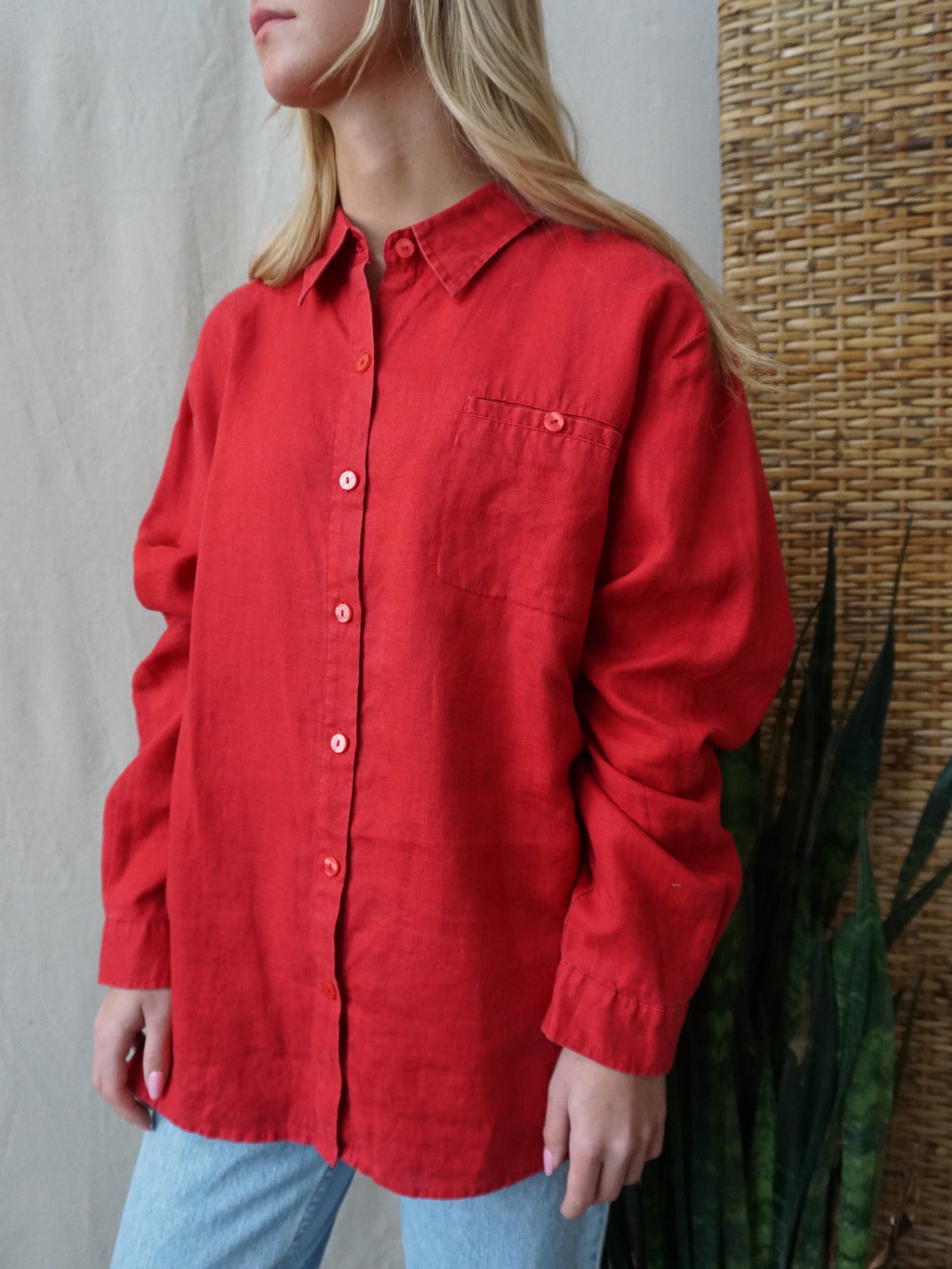 Red Linen Shirt—[L]