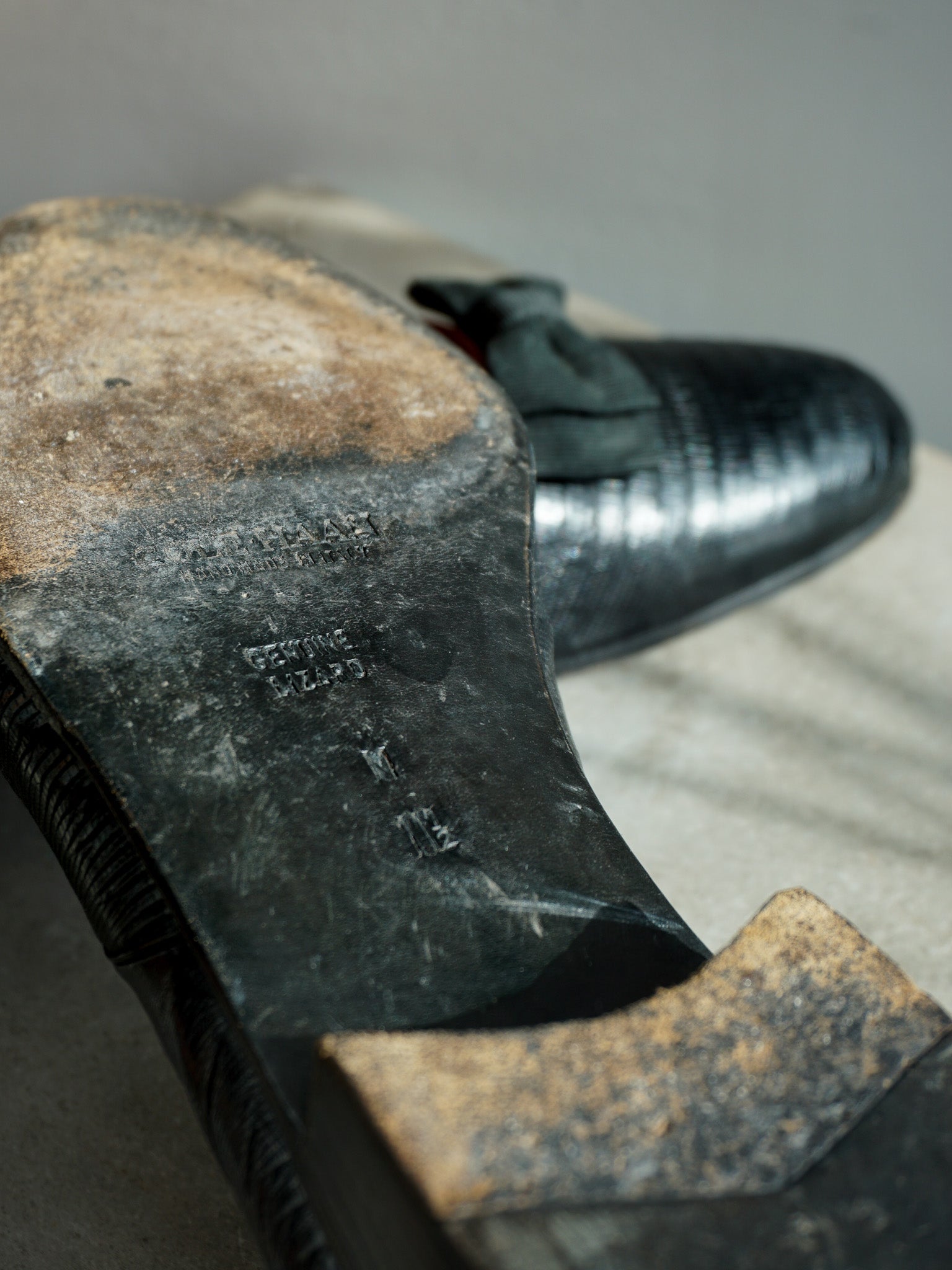• Materials: Genuine Lizard Upper, Leather Insole & Sole, Fabric Bow.