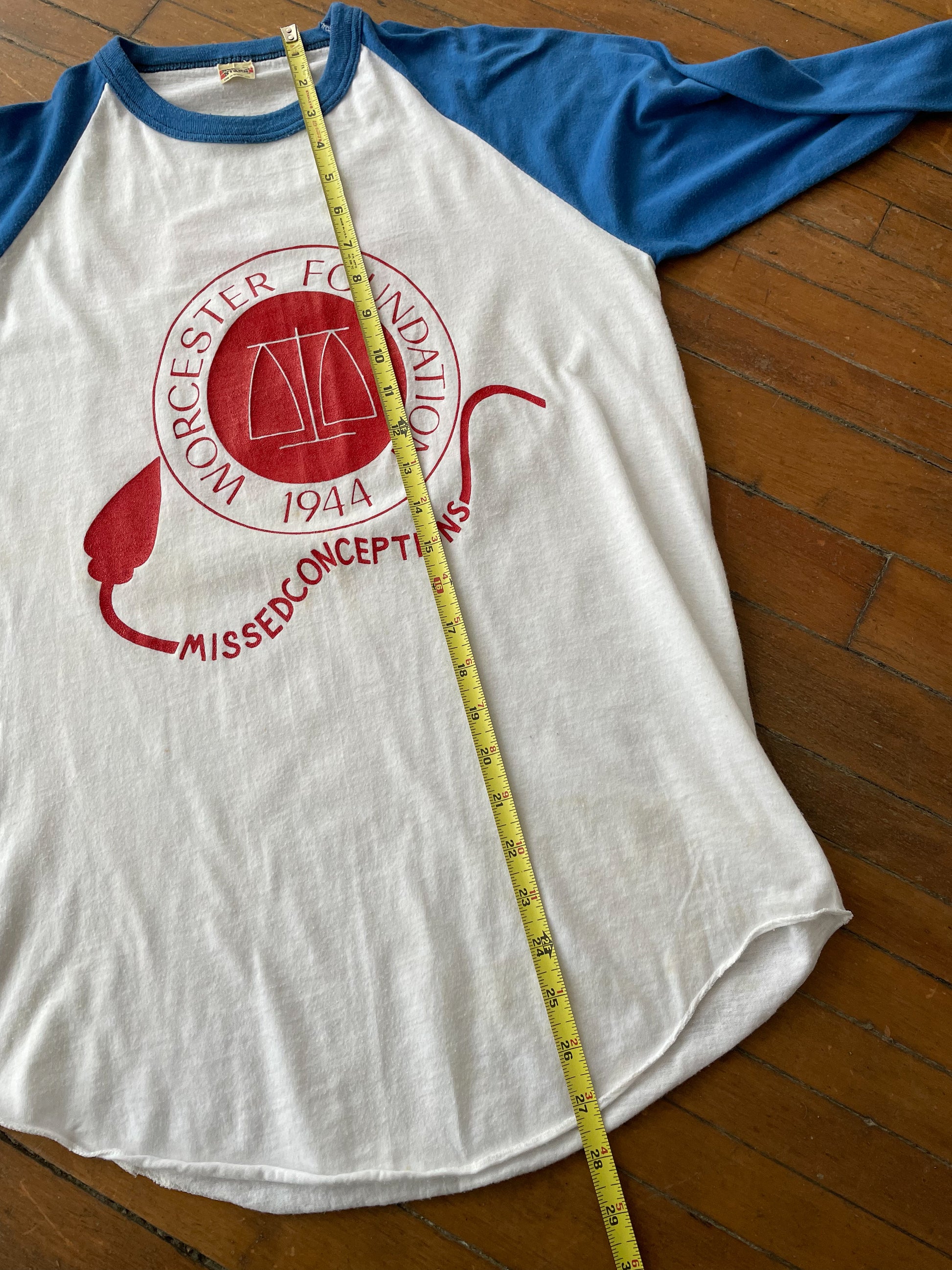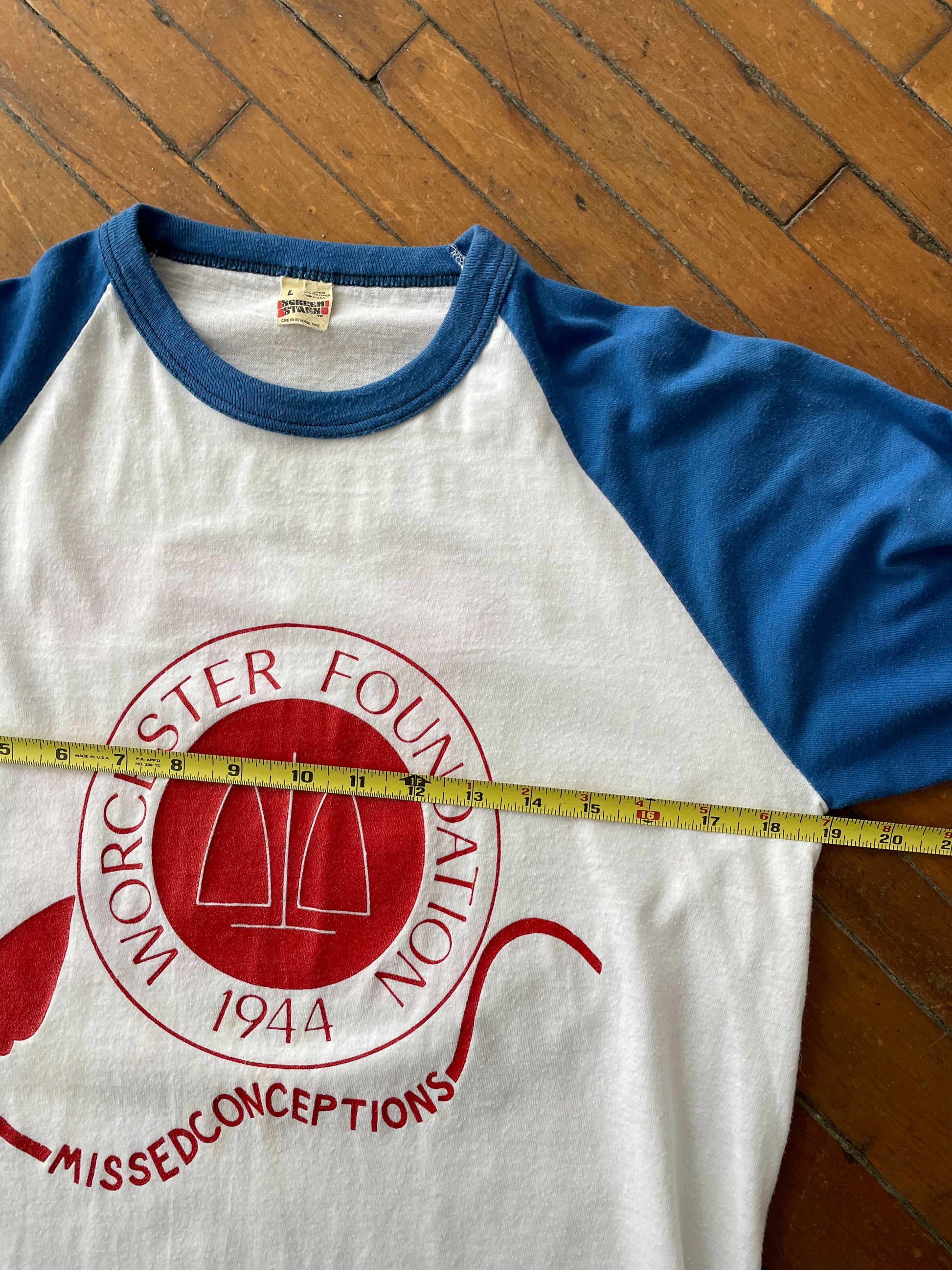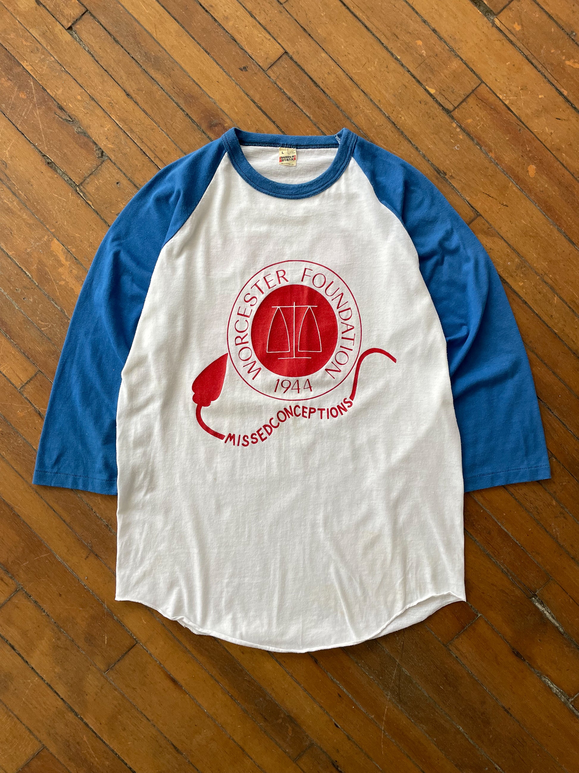 WORCESTER "MISSEDCONCEPTIONS" BASEBALL T-SHIRT—WHITE/BLUE [L]